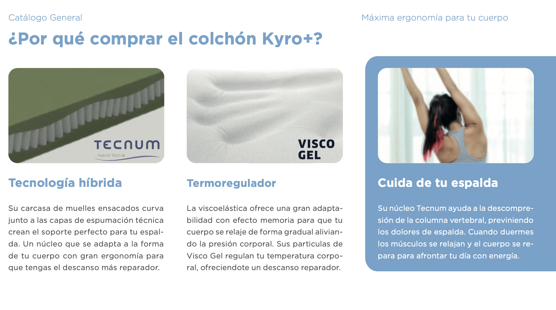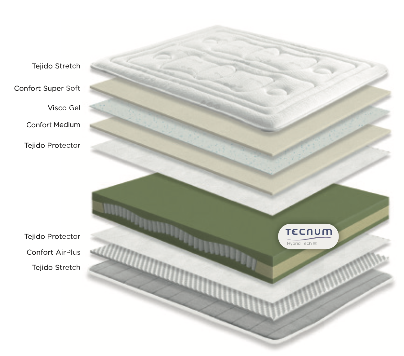 Una sofisticada tecnología que combina los puntos fuertes de los muelles ensacados con lo mejor de la espumación técnica: un corazón de colchón de muelles alojado dentro de una estructura tecnológica celular especial que se adapta perfectamente a tu cuerpo.