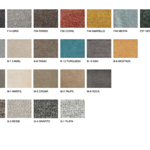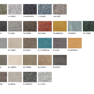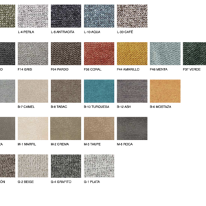 | Tipo de color | MILAN Jade, MILAN Perla, MILAN Antracita, MILAN Aqua, MILAN Café, BELFAST Negro, BELFAST Gris, BELFAST Pardo, BELFAST Coral, BELFAST Amarillo, BELFAST Menta, BELFAST Verde, BELFAST Azulón |